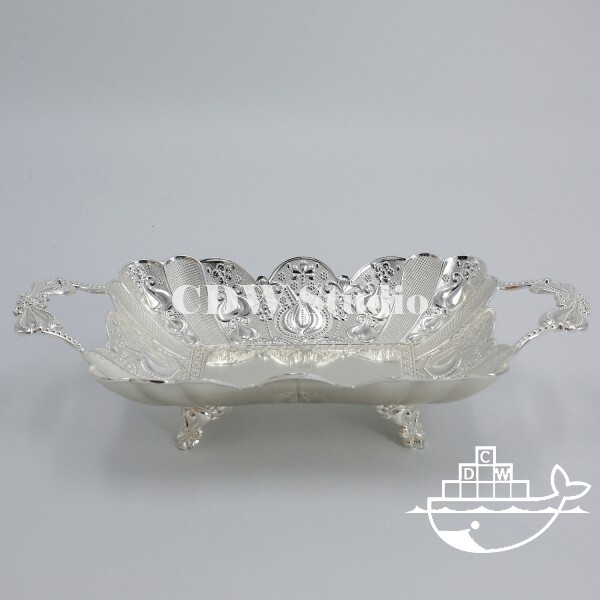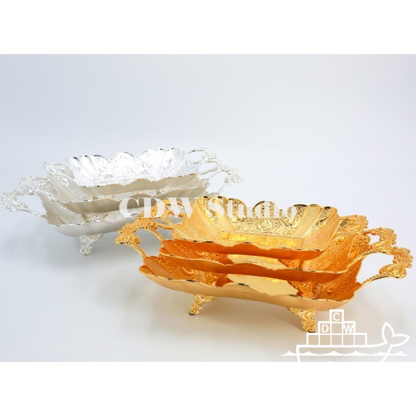 商品名称:8寸珠珠郁金香长方果盘连脚(手挽)