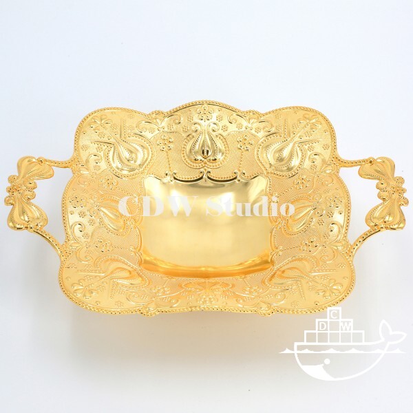 商品名称:9寸珠珠郁金香方形果盘连脚(手挽)
