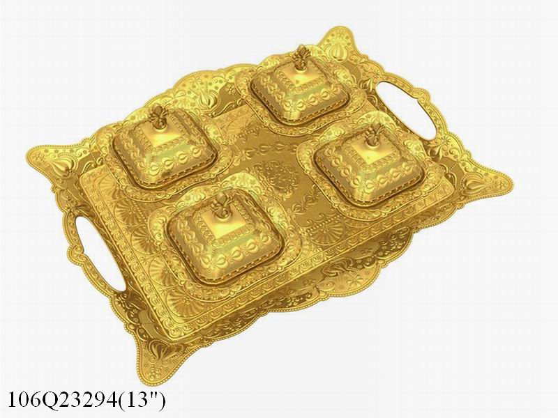 商品名称:4个有盖双面珠珠郁金香方形碗连13寸长方合金碟