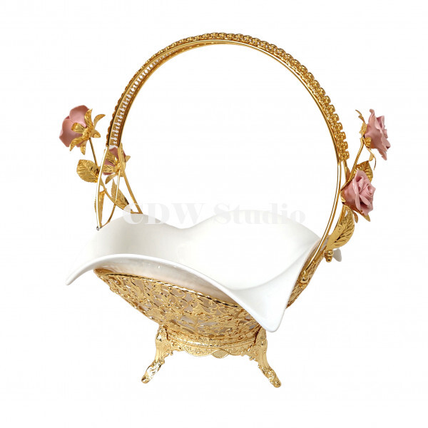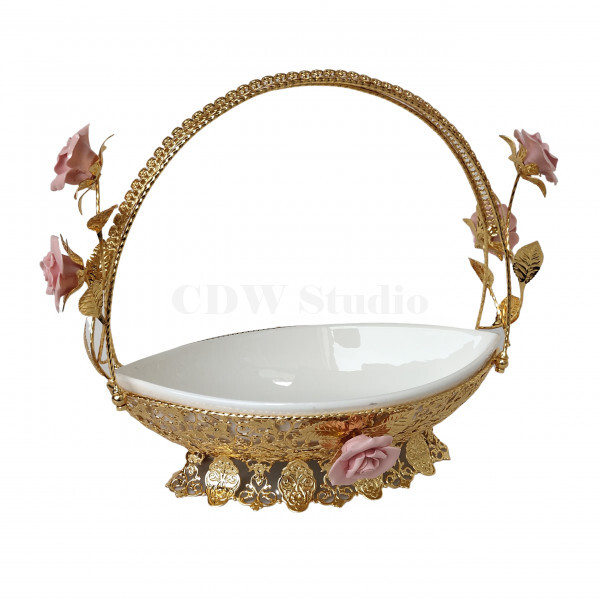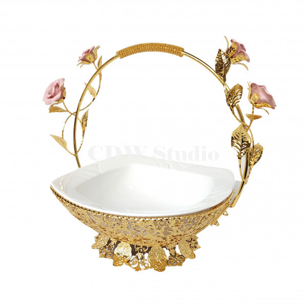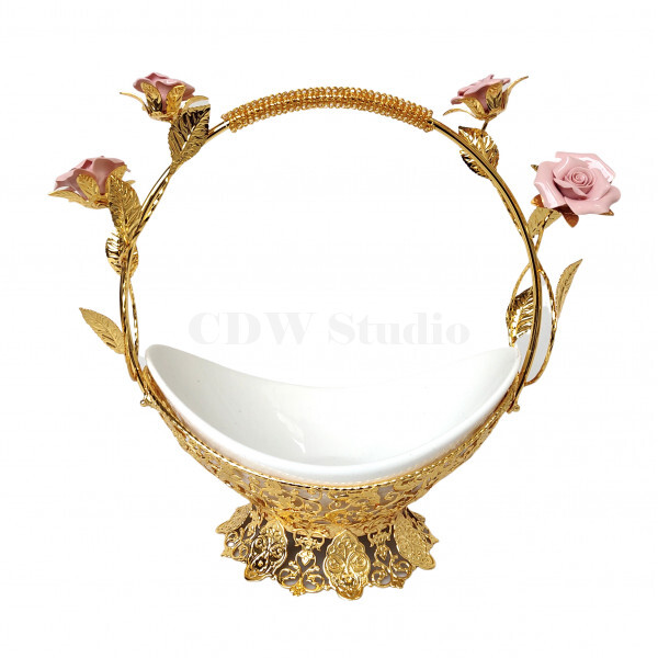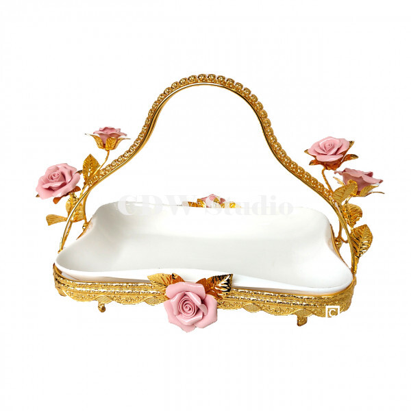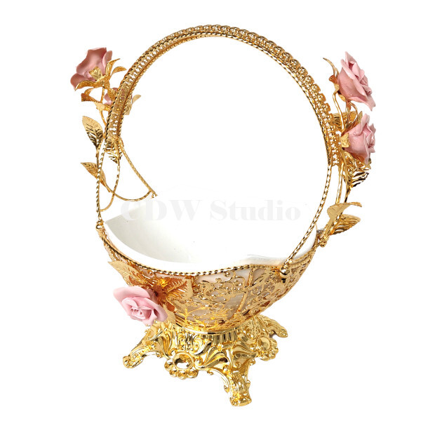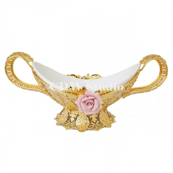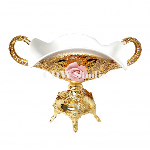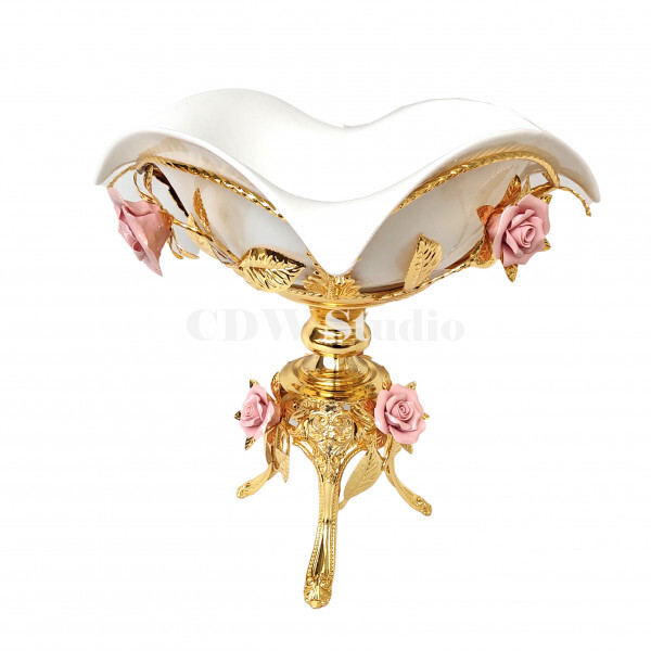 陶瓷玫瑰花手挽花框配10寸飞天陶瓷碗连脚