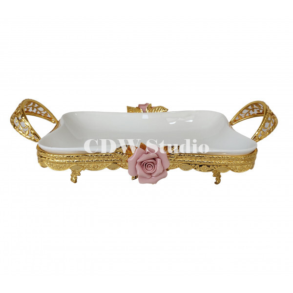 通花心形压花长方碟连三脚小座